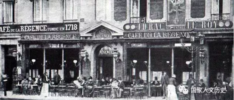 1844年8月28日,马克思在巴黎的凯皇咖啡馆(Café de la Régence)与到访巴黎的德国社会主义者弗里德里希·恩格斯会面,二人一见如故,从此建立了深厚的友谊,两人第一次合作写了《神圣家族》。凯皇咖啡馆,极富有法国摄政时期风格,是当时巴黎最著名的咖啡屋之一,伏尔泰、本杰明·富兰克林、狄德罗、路易斯•拿破仑曾经都是它的顾客