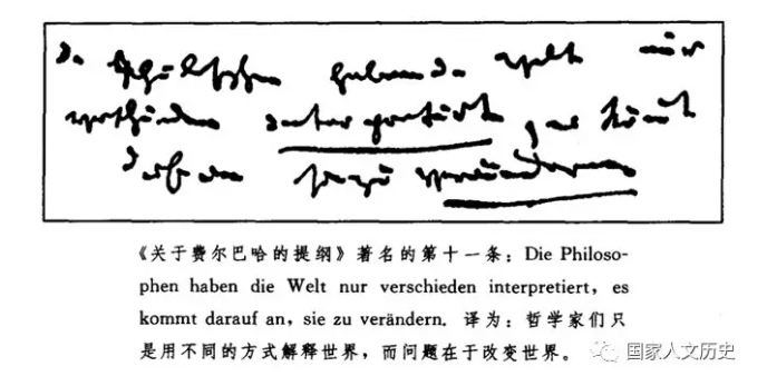 《关于费尔巴哈的提纲》著名的第十一条,译为:哲学家们只是用不同的方式解释世界,而问题在于改变世界